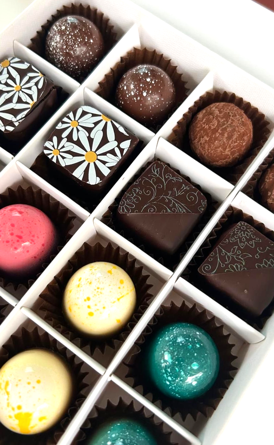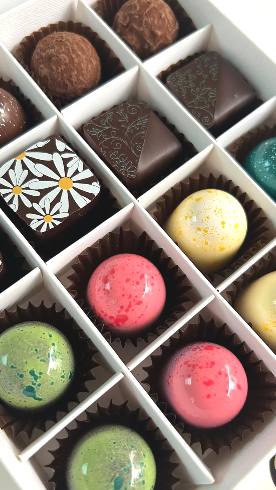 3 delicious decorated chocolate lollies and a box of chocolate Truffles *.