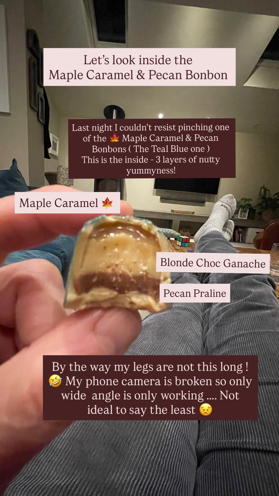 - Mapel Blonde Ganache & Pecan - Blonde Chocolate, mapel caramel, blonde ganache and pecan praline