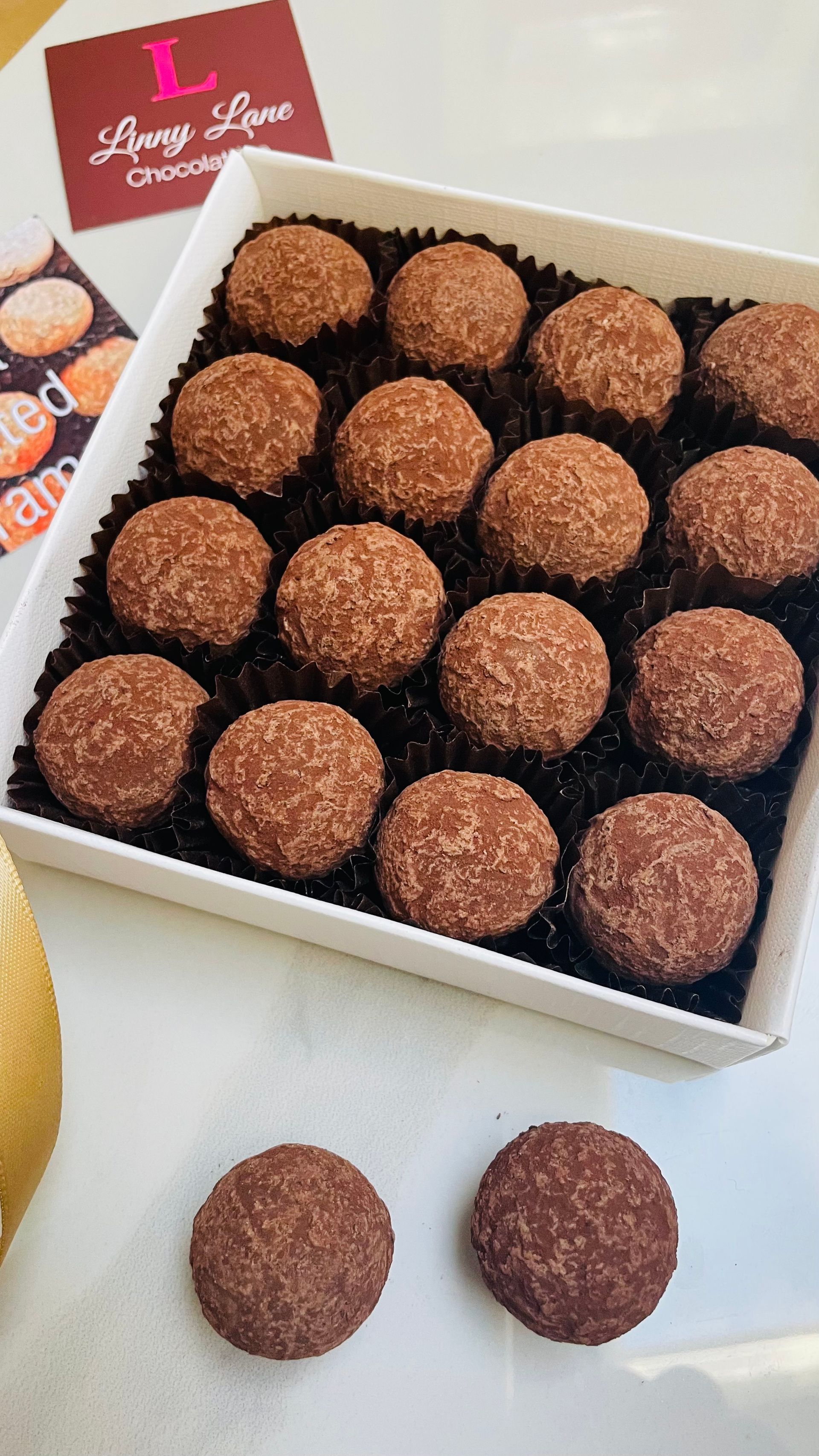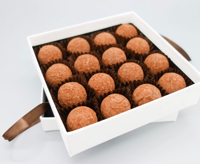 These are simply delicious, Oozy Caramel with a touch of Maldon Sea Salt encased in Dark Chocolate shells and dusted with cocoa powder......